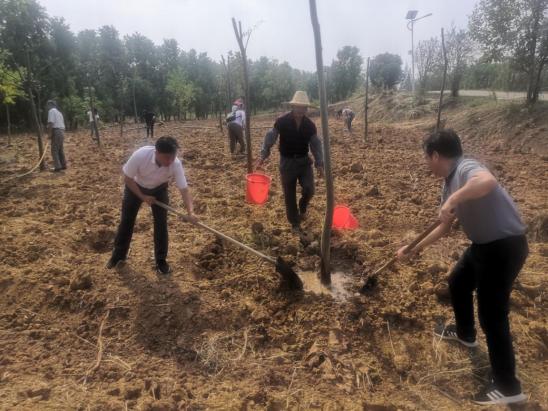 其后,大家來到公司位于浮山村苗圃的幫扶林,領(lǐng)導(dǎo)和公司黨員們一起,兩人一組將從農(nóng)戶新采購的苗木種植到位。大家有的扶樹正苗,有的揮鍬培土,有的踩土定植,配合十分默契,不一會(huì)苗圃基地再添一抹新綠。