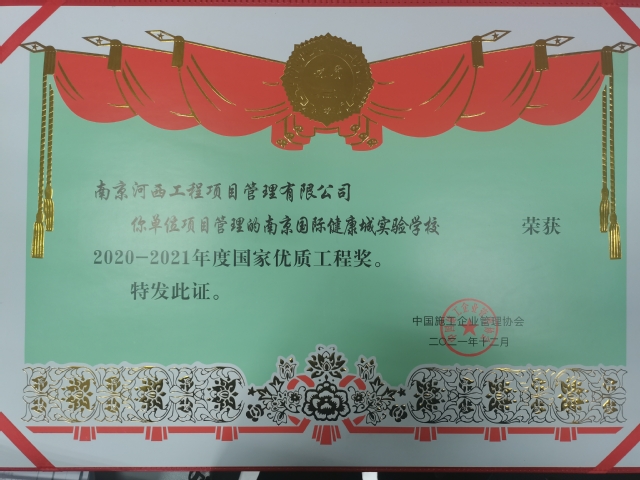 近期,河西集團(tuán)新城公司所屬南京河西工程項(xiàng)目管理有限公司代建的南京國(guó)際健康城實(shí)驗(yàn)學(xué)校項(xiàng)目項(xiàng)目喜獲2020-2021年國(guó)家優(yōu)質(zhì)工程獎(jiǎng)”。